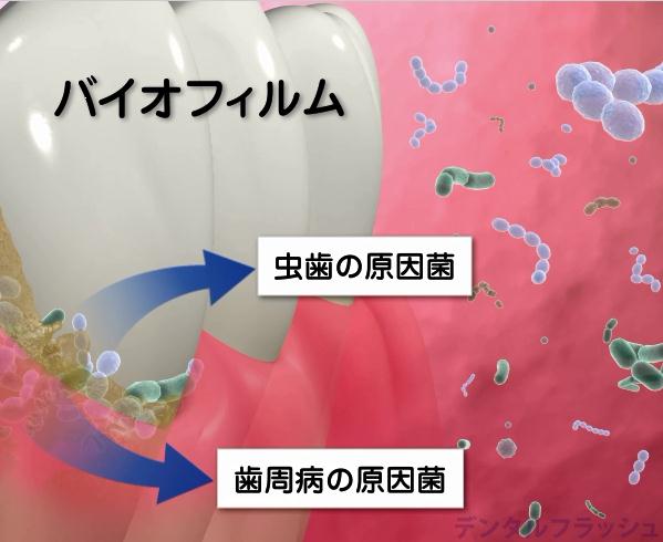 しかし、きれいに見えてる歯でも、歯の表面や歯茎の中(歯周ポケットあるいは歯肉溝)にはバイオフィルム(細菌のコロニー;凝集塊)が形成されており、これが虫歯や歯周病、口臭の原因となります。